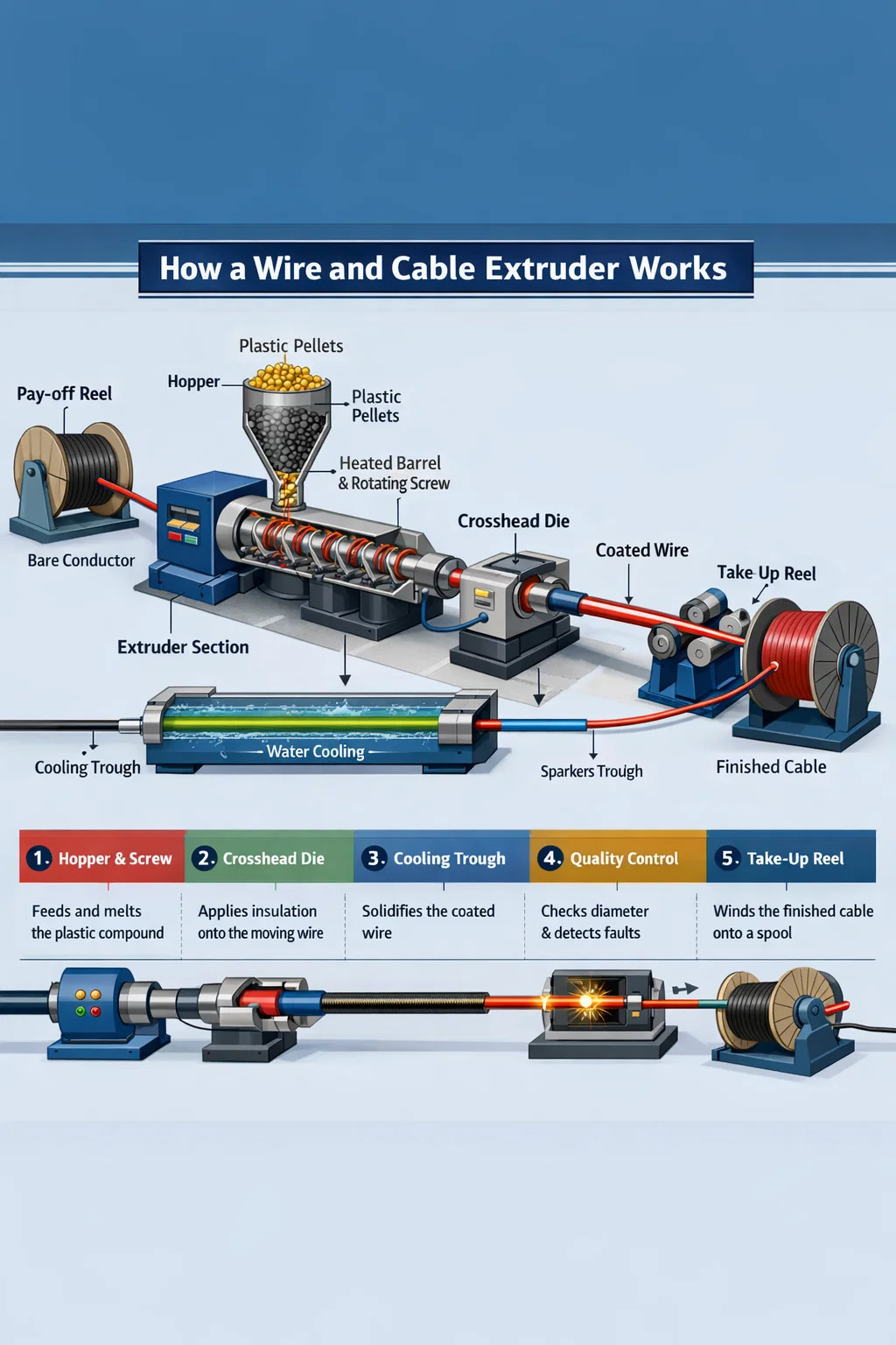 - 2 كيف أ آلة بثق الأسلاك والكابلات يعمل في الواقع